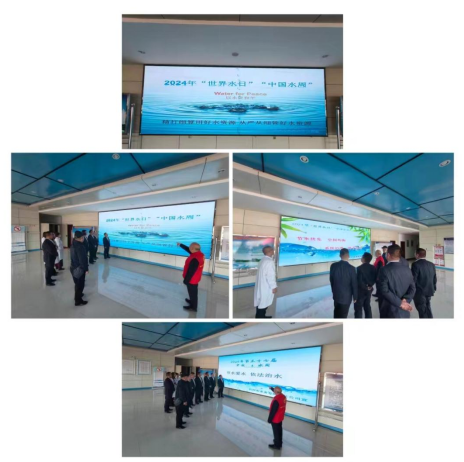 機關(guān)黨支部黨員志愿者帶領(lǐng)下,與會代表在忻州市節(jié)水教育基地展板前認真學習了習近平總書記關(guān)于保護水資源的系列講話精神。在忻州市節(jié)水教育基地忻州市水資源電子沙盤前了解忻州市水資源現(xiàn)狀,聽取了志愿者講解“節(jié)水優(yōu)先、空間均衡、系統(tǒng)治理、兩手發(fā)力”的治水思路和全省“三縱九橫、八河連通”水網(wǎng)體系建設(shè)成果。在水質(zhì)檢測大樓門廳大顯示屏前聽取了志愿者講解2024年“世界水日?中國水周”宣傳標語深刻內(nèi)涵和節(jié)水常識。