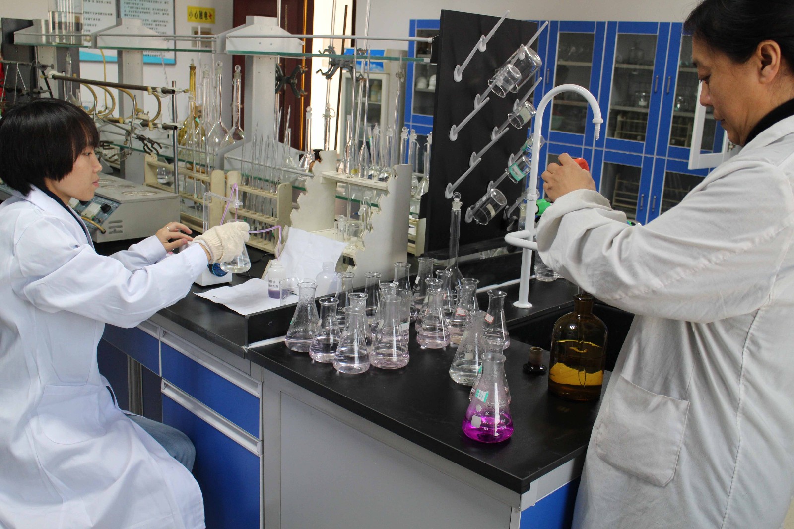 檢測中心王世平、賈麗萍進行培養(yǎng)皿的清洗工作